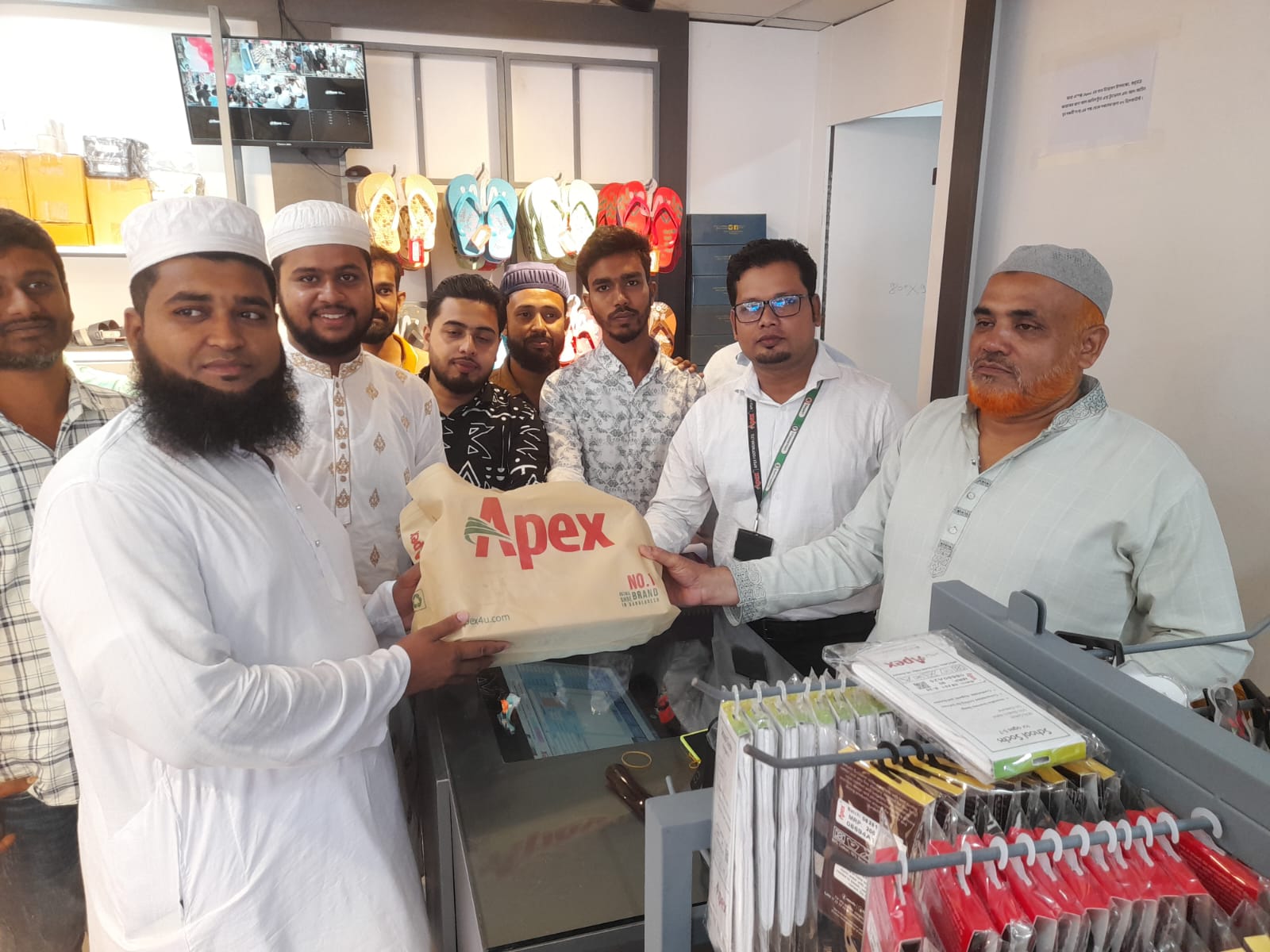 ঐতিহ্যবাহী ভাঙ্গা বাজারে এই প্রথম জনপ্রিয় পাদুকা উৎপাদনকারী প্রতিষ্ঠান এ্যাপেক্স এর শোরুম উদ্বোধন করা হয়েছে । বুধবার সকালে বাজার থানা রোডে সিরাজুল হক মার্কেটের ২য় তলায় এ্যাপেক্স এর নতুন শোরুম উদ্বোধন করেন আল আমিন ট্রাভেলস এন্ড ট্যুরস এর চেয়ারম্যান মোঃ আল আমিন মিয়া। উদ্ধোধন অনুষ্ঠানে আরো উপস্থিত ছিলেন, অ্যাডভোকেট আমিনুল ইসলাম, এ্যাপেক্স এর ঢাকা বিভাগের ম্যানেজার বাদশা আহমেদ, ভাঙ্গা সিঙ্গার শোরুমের ম্যানেজার জসিম উদ্দিন, বিশিষ্ট ব্যবসায়ীর পিন্টু কাজি, ব্যবসায়ী বেলায়েত ভূঁইয়া, ব্যবসায়ী জুয়েল, জাকির কমিশনার সহ স্থানীয় সাংবাদিকবৃন্দ প্রমুখ। এ্যাপেক্স এর শো-রুমের মালিক মোঃ আল আমিন মিয়া বলেন, বাংলাদেশের মধ্যে উন্নত ব্রান্ডের জুতা স্যান্ডেল সহ যাবতীয় এ্যাপেক্স এর জিনিসপত্র পাওয়া যাচ্ছে। এখন আর আপনাদের উন্নত মানের জুতা স্যান্ডেল কিনতে ঢাকায় যেতে হবে না এখন ভাঙ্গা বাজারে পাবেন। আজকে উদ্বোধন উপলক্ষে সকল পণ্যের উপর ৫ পার্সেন্ট ছাড় দেওয়া হয়েছে। আপনারা এ্যাপেক্স এর শো-রুম থেকে সকল পন্য ক্রয় করবেন এবং আপনারা সার্বিক সহযোগিতা করবেন।